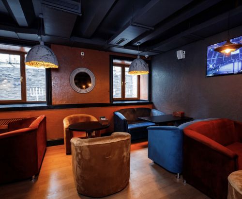 В заведении 2 зала с 18 просторными столами, в состав которых входят, в т.ч. 2 приставки PS4.