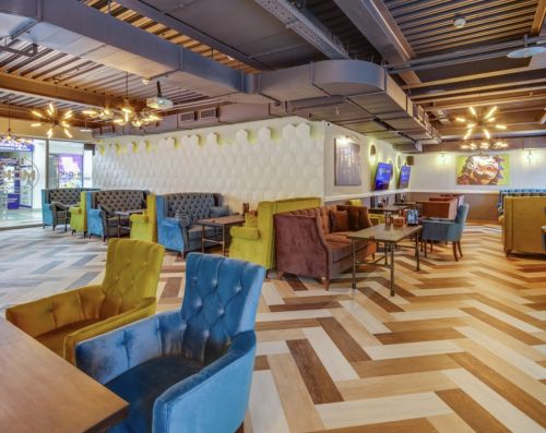 Описание: Lounge-кафе МСК в Беляево – уютное и атмосферное заведение сети МСК площадью 170 кв. м, расположенное в ТЦ «Ареал» на ул. Профсоюзная 102, с.1. В заведении общий зал с 15 столами, включая 3 стола с игровыми приставками, а также VIP-комната вместимостью до 12 человек.