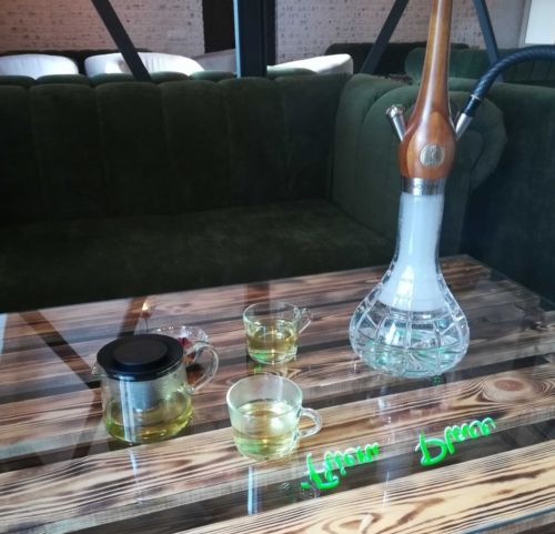 Наши мастера-кальянщики владеют навыками и знаниями миксологии, поэтому кальян курится долго и очень дымно. В работе используем кальяны «Matt Pear», это лучший кальян 2017 года, а также кальян «Wookah», Польский кальян выполненный из дуба и хрусталя! В наличии всегда имеется вся линейка табака «Dark side» и «Tangiers» (танж), Адалия и тому подобное.