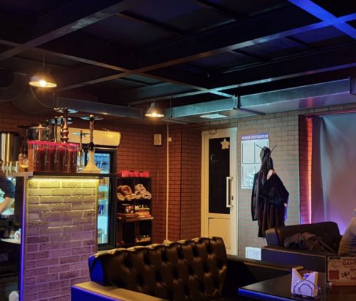 2 этажа: первый этаж это лаундж зона, второй этаж это лаундж совмещённый с ps-4 и третья зона это компьютерная с мощными компами. Во всех зонах можно курить кальяны, имеется кухня и напитки, чаи, кофе и пиво.
