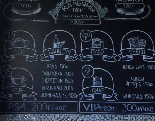 В кальянной имеется Vip комната, где стоит PS4 со всеми новыми играми. Вы можете провести время за большим количеством настольных игр на любой вкус и возраст. Также Вы можете посмотреть у нас фильмы или прямые трансляции на большом экране.