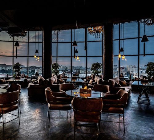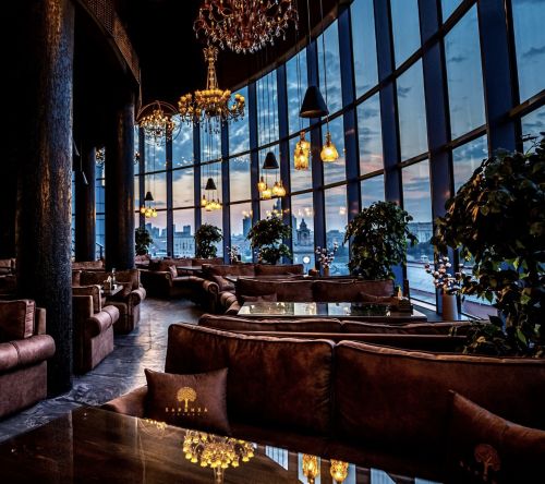В кальянном клубе для вас несколько вариантов размещения. Основной зал с панорамным остеклением и завораживающим видом на Киевскую площадь, Москва-реку и другие красоты столицы. Именно в нём размещена сцена, с которой артисты, в голоса которых невозможно не влюбиться, будут делать ваши вечера незабываемыми.