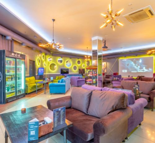 Описание: Lounge-кафе МСК в Митино – одно из самых красивых заведений сети МСК Lounge, площадью 200 кв. м, расположенное в ТЦ «Пятница» на ул. Пятницкое шоссе 3 (2 этаж). В заведении большой просторный зал с 20 столами, включая 3 стола с игровыми приставками.